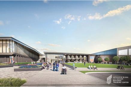 The Arthur M. Blank U.S. Soccer National Training Center will span 200 acres and include more than a dozen soccer fields and over 100,000 sq. ft. of indoor playing spaces. The facility will also include more than 200,000 sq. ft. of high-performance facilities, locker rooms, meeting rooms and headquarters space for all U.S. Soccer staff and is expected to open in Spring 2026.
